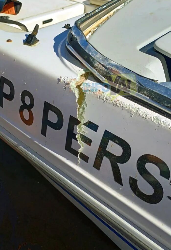 Aparentemente la lancha que provocó el accidente golpeó violentamente el casco, y quedó encima de la otra embarcación, pero afortunadamente no ocurrió una tragedia.