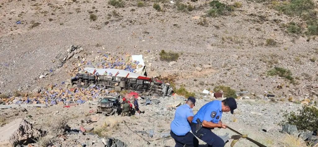 En la tarde de este martes 18, debieron cortar totalmente el tránsito sobre la ruta nacional 7 desde Uspallata hasta la altura de Potrerillos, como consecuencia del accidente producido entre un camión uruguayo que colisionó dos autos chilenos y luego desbarrancó arrastrando también a uno de lo autos.