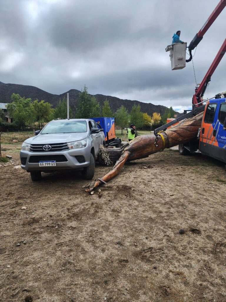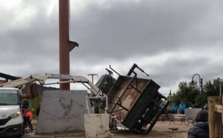 Según datos extraoficiales, obreros se encontraban desarrollando trabajos en inmediaciones del Cristo, cuando una grúa habría presentado una falla y quedó de costado.