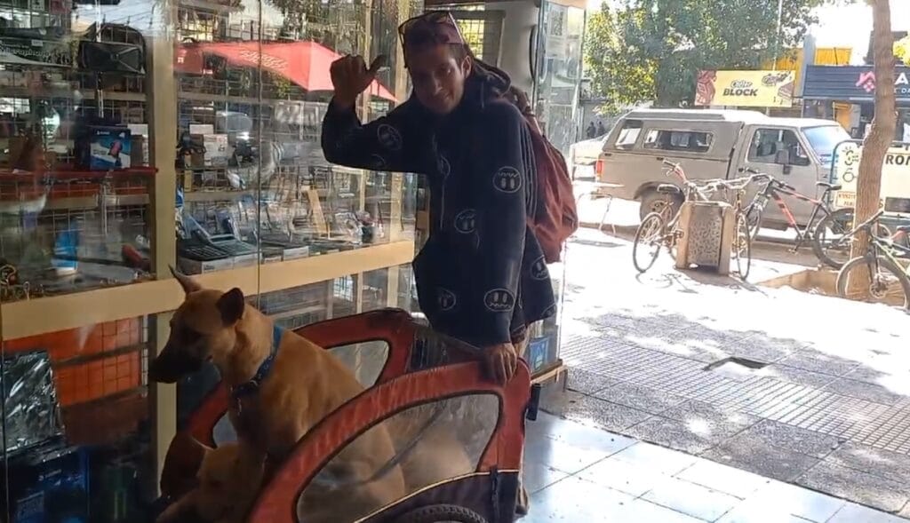 Agustín es Trenque Lauquen, Buenos Aires viaja por la Argentina y el mundo desde hace 9 años. Pero hace poco más de 2 años que lo hace acompañado de sus mascotas.