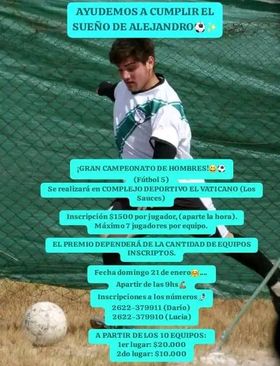 Su familia ha organizado un torneo de clubes para recaudar dinero y acompañarlo en su sueño.