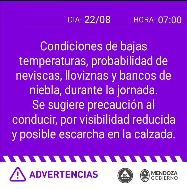 Para quienes deban transitar, se recomienda circular con suma precaución, reducir la velocidad y evitar maniobras de sobrepaso a fines de evitar mayores inconvenientes.
