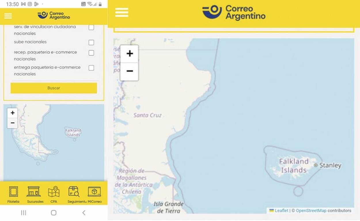 Polémica por un mapa de Correo Argentino que llamó «Falklands» a las Islas Malvinas
