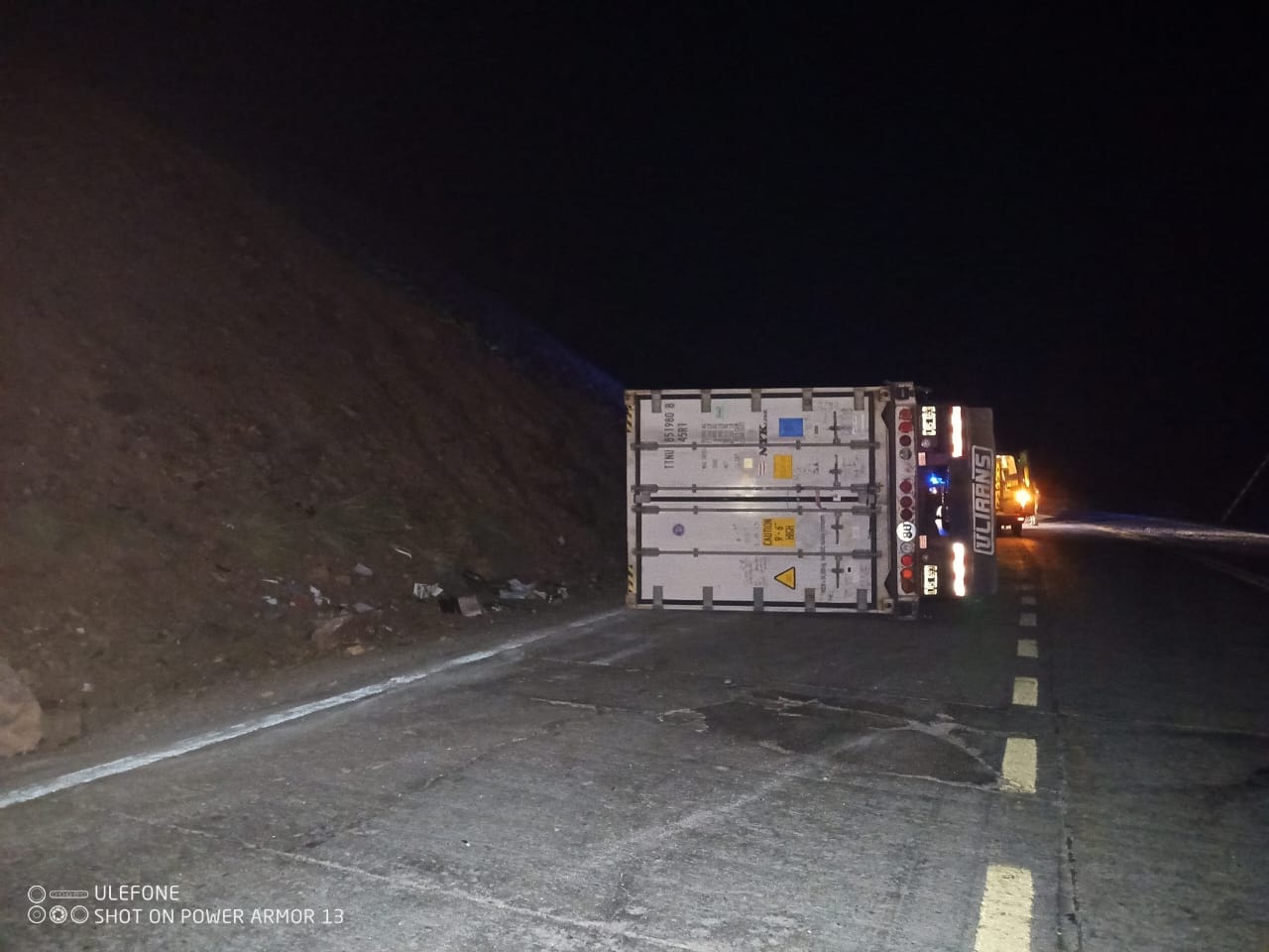 Un camión volcó en Ruta 7 y el conductor quedó atrapado