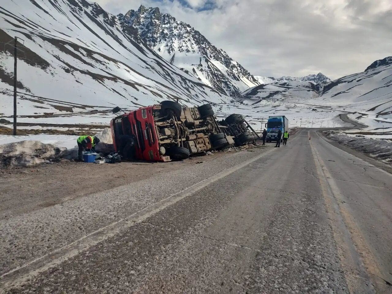 Un camionero volcó el alta montaña