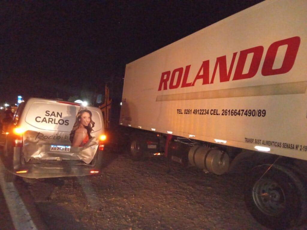 La Reina de San Carlos, Rocio Neila, regresaba junto a su equipo de trabajo, de actividades vendimiales en Ciudad de Mendoza. Un camión realizó una maniobra imprudente y esto derivó en un choque en cadena, involucrando a dos vehículos, fue el tercer rodado, el más afectado.