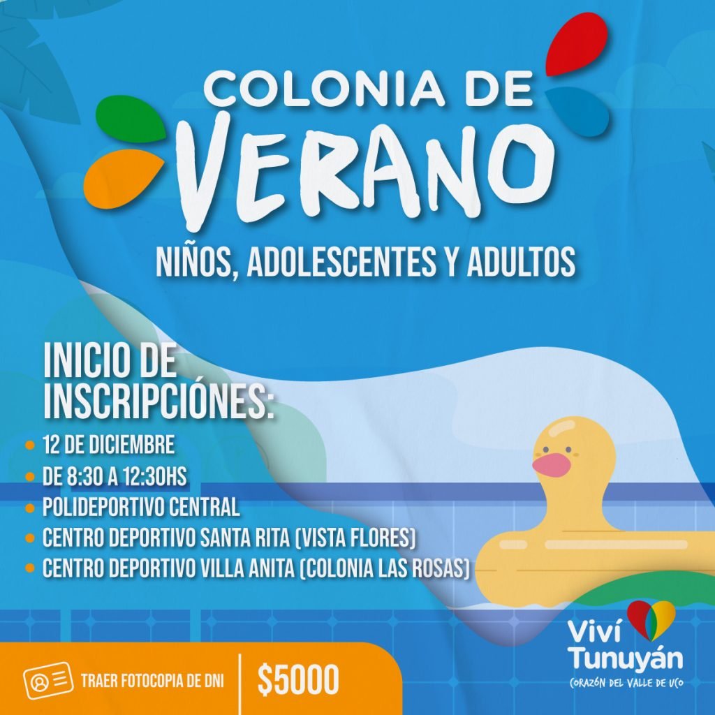 Comenzarán las inscripciones para la colonia de verano en Tunuyán