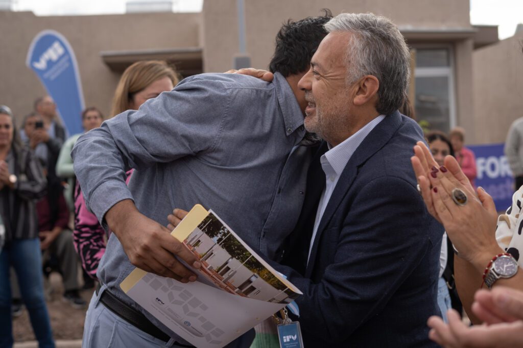 Ante esta realidad, el Gobernador destacó el esfuerzo del Estado provincial por seguir construyendo viviendas mientras se trabaja por estabilizar la economía. “Nos hemos propuesto apoyar al Gobierno nacional para ordenar la macroeconomía y que vuelva el crédito hipotecario. Pero, mientras tanto, no vamos a dejar de hacer viviendas”, aseguró. Y agregó: “Estamos casi todas las semanas entregando casas: 10, 15, 25. Esta entrega de 102 es una de las más grandes, pero no vamos a parar”.