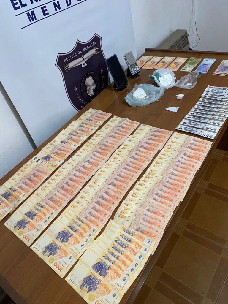 Como lo anticipó 8 DIGITAL durante el fin de semana, la primera medida fue en un domicilio ubicado en calle Costa Canal Zingaretti s/n de Tupungato. Allí, se detuvo a un hombre de 44 años, logrando el secuestro de: un envoltorio de nylon con cocaína compactada de 99,27 gramos, un envoltorio de nylon con cocaína en polvo de 43,46 gramos, un envoltorio de nylon termosellado con cocaína compactada de 5,21 gramos, una cuchara con restos de cocaína, un recorte de nylon color blanco, una balanza digital color gris en funcionamiento, un teléfono celular y $169.510 en billetes de baja denominación.