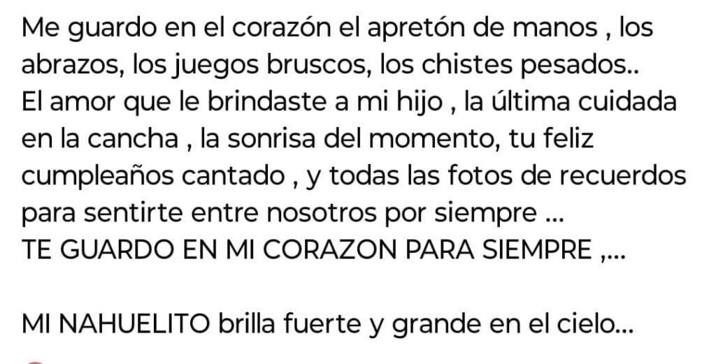 Por estas horas, sus amigos y familia atraviesan un duro momento, en medio del dolor compartieron su despedida con mensajes a través de las redes sociales. Allí, Nahuel se mostraba fiel a sus amistades compartiendo grandes momentos, y así será recordado.