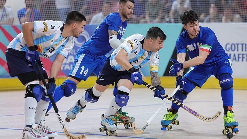 La Selección argentina masculina derrotó este sábado a Italia por 5 a 4 en la semifinal, y pasó a la final del Mundial de hockey sobre patines, que se juega en Novara, Italia y forma parte de los World Skate Games.