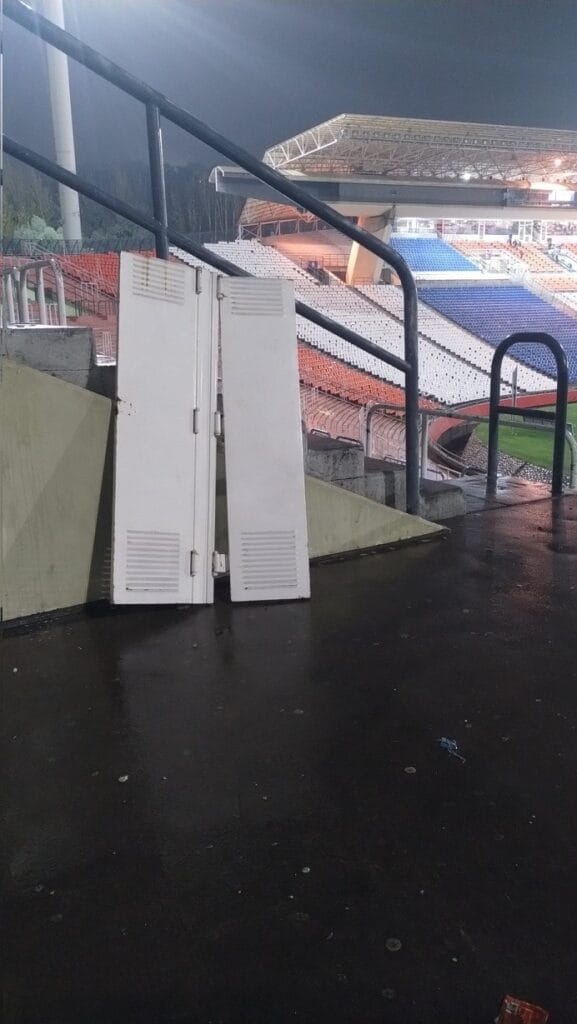 A pocos minutos de iniciado el segundo tiempo, el partido tuvo que ser suspendido por los desmanes que se produjeron en la cancha. También, toda una batería de baños quedó destruida y la Policía de Mendoza trabajaba en las instalaciones para dar con algún elemento para esclarecer los hechos.