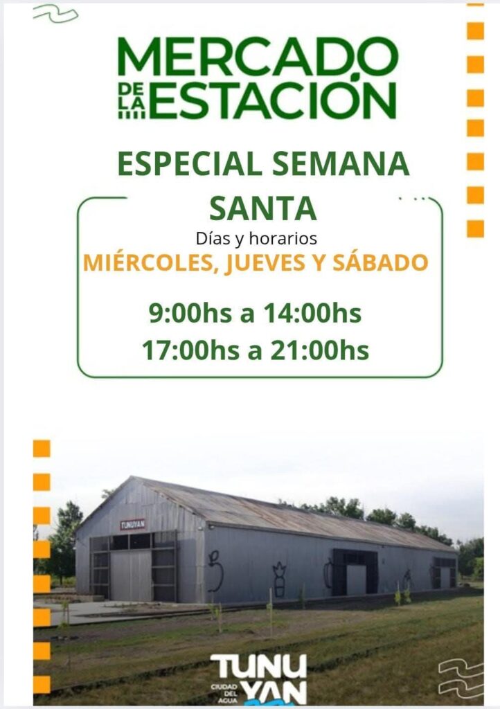 Tunuyán contará con una nueva oferta de productores regionales, especial Semana Santa, en el Mercado de la Estación. Sitio de encuentro dispuesto por la Municipalidad de Tunuyán con el objetivo para fortalecer la economía local y dar visibilidad al trabajo de los productores y emprendedores locales.