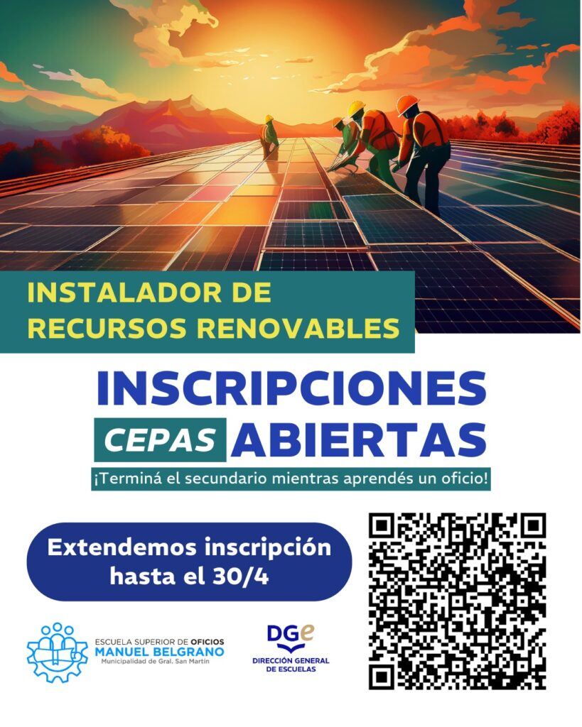 Con el que objetivo de que puedan concluir los estudios secundarios con formación profesional en los Centros de Educación Profesional para Adultos de Nivel Secundario (CEPAS) de la provincia, la Dirección General de Escuelas (DGE), a través de la Dirección de Educación Permanente para Jóvenes y Adultos, extendió la fecha de inscripción hasta este miércoles 30 de abril.