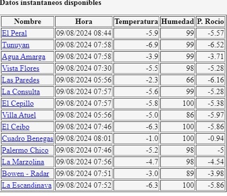 La Dirección de Contingencias Climáticas, difundió el registro de temperaturas mínimas, este viernes cerca de las 8,se registraron casi siete grados bajo cero.