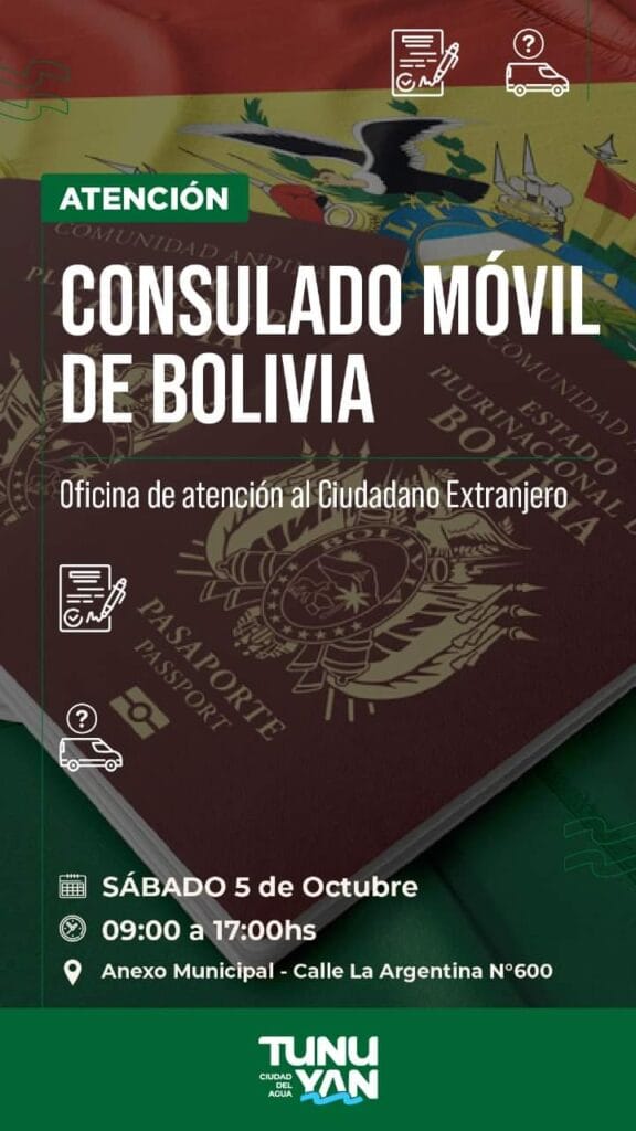 Hoy: el Consulado de Bolivia atenderá en Tunuyán