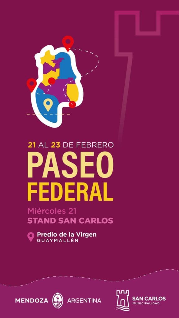 La Municipalidad de San Carlos invita a vecinos y turistas a recorrer su stand y a brindarle su apoyo a la flamante soberana electa Rocio Neila, quien junto a bailarines, músicos y el equipo municipal montarán el espectáculo sobre el escenario y los atractivos del stand turístico.