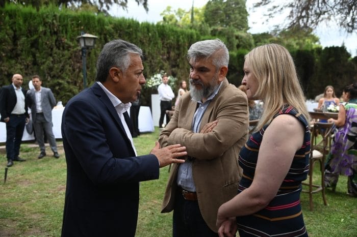 Entre la charla de los asistentes, no faltó el comentario con toques de la infaltable rosca política, sobre la tensa relación entre Milei y las provincias por los fondos coparticipables, que llegó a la Justicia nacional. Otro tema excluyente entre el cafecito, las confituras y los discursos: las gravísimas consecuencias de la feroz tormenta granicera del miércoles sobre zonas de Maipú, San Martín, Lavalle, Rivadavia y Luján, que dañaron, según Cornejo, 12 mil hectáreas productivas y no productivas.