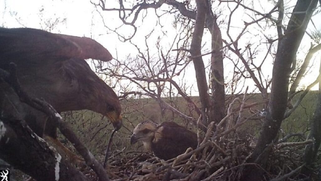 Esta tarea comenzó con la observación de la pareja en el nido por parte de pobladores locales, quienes dieron aviso a los guardaparques de la reserva. De inmediato, se activó el protocolo para registrar en fotos todo el proceso de crianza: desde la reproducción hasta el momento en el que el pichón abandona el nido, con métodos que no alteraron la vida de la pareja.