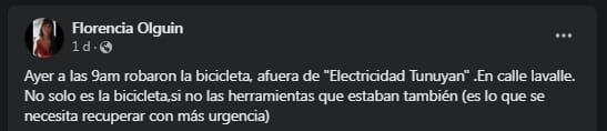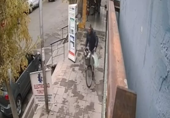 Si bien el rodado estaba sin medidas de seguridad apoyado en la pared, y su propietario entró dos minutos a un comercio; el malviviente los aprovechó para asegurarse que no era observado para tomar la bicicleta y rápidamente darse a la fuga.