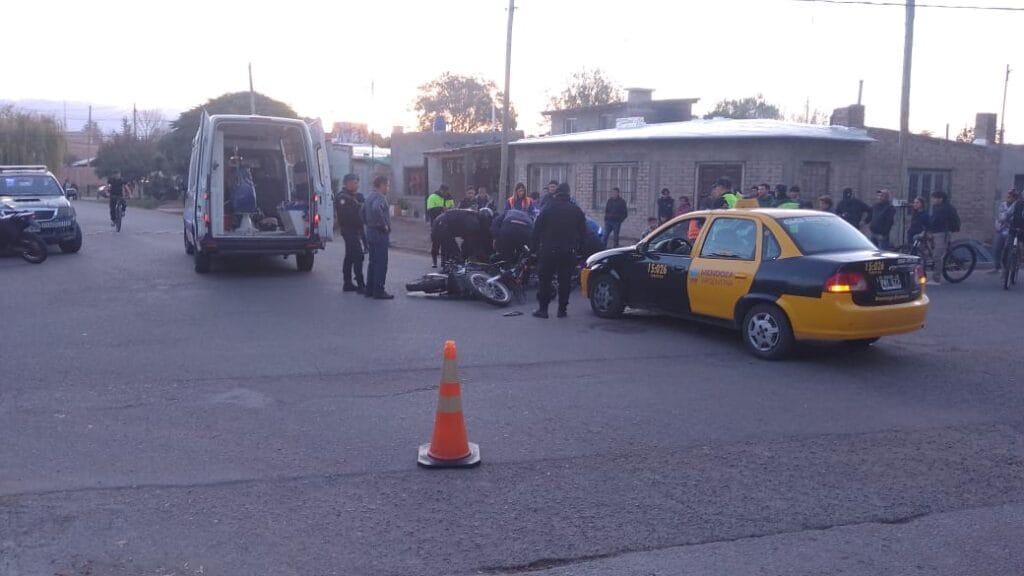 Un taxi colisionó con una moto esta tarde en la ciudad de Tunuyán.