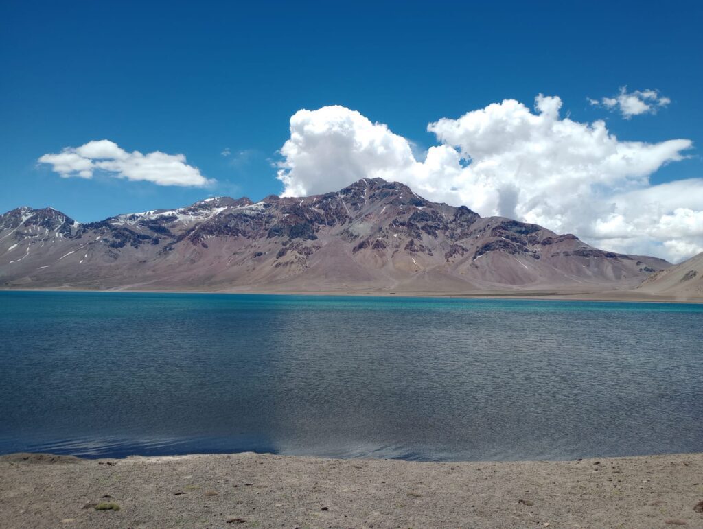 Está ubicada 220 km al suroeste de la ciudad de Mendoza, en el departamento de San Carlos y el tiempo aproximado de viaje desde allí son cuatro horas. El espejo de agua está ubicado en la cordillera principal, a 3.300 metros sobre el nivel del mar, a los pies del majestuoso volcán Maipo (5.323 m s.n.m.).