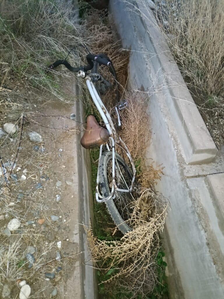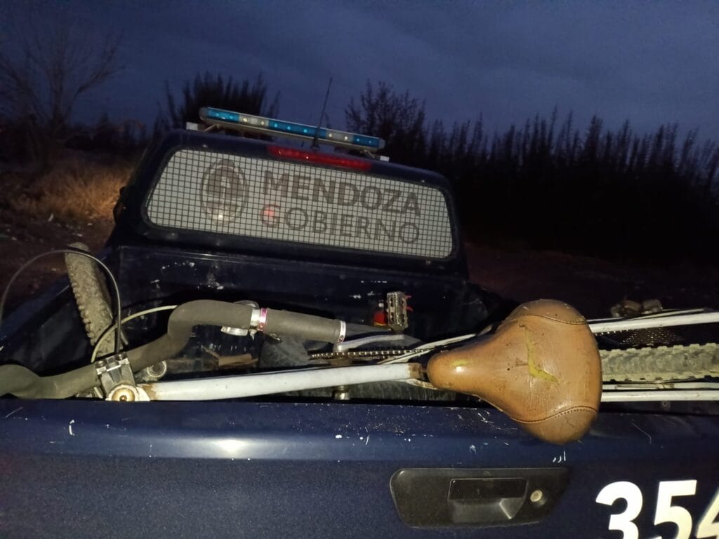 Como parte del operativo, observaron en una zona un montón de yuyos aplastados, como tapando algo. Tras descubrir los mismos, encontraron una bicicleta toda cubierta y escondida.