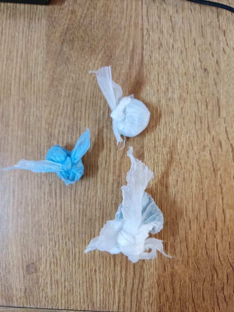 Una cuchara envuelta en nylon con cocaína