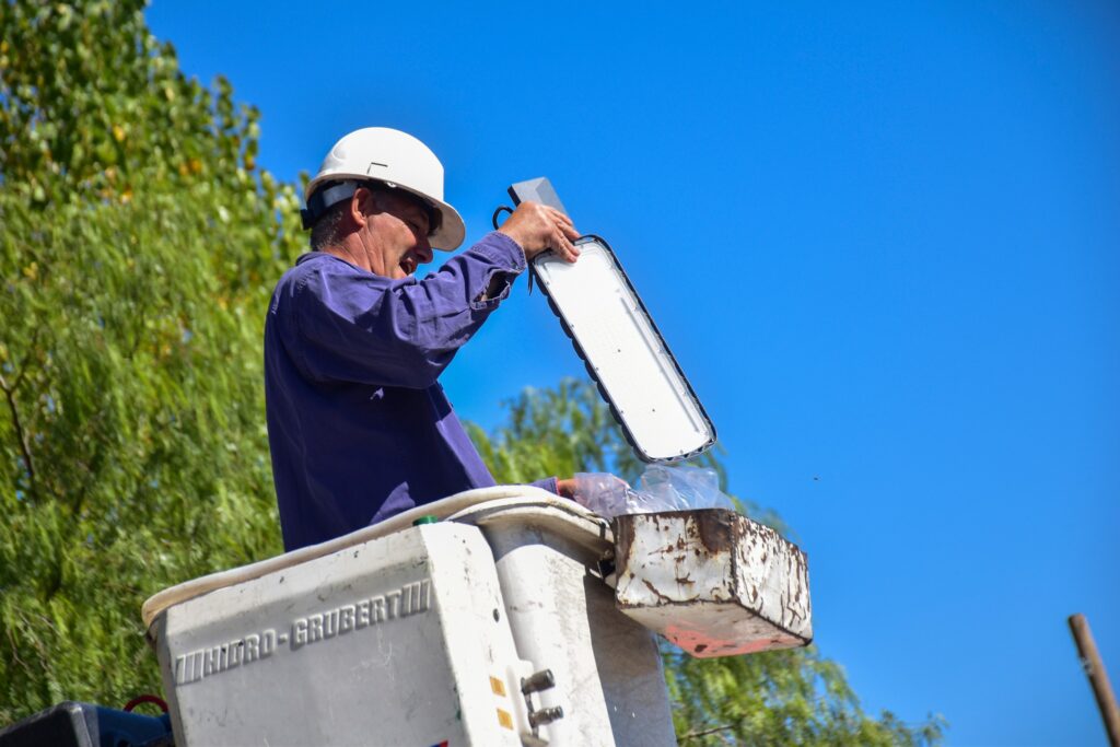 El equipo municipal concretó importantes obras en el distrito de Vista Flores. Pensando en mejoras viales, se colocaron 1200 metros de luminarias led en Ruta Provincial 94, desde la intersección del Corredor Productivo hasta calle Clodomiro Silva.