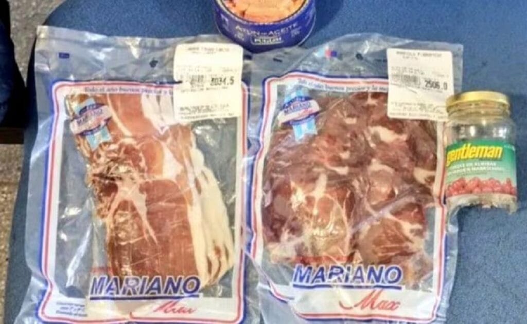 Ante la insólita situación, los empleados dieron aviso a la Policía y luego los efectivos comprobaron que quería llevarse bondiola, jamón crudo, un pote de mermelada y un frasco de vidrio con cerezas