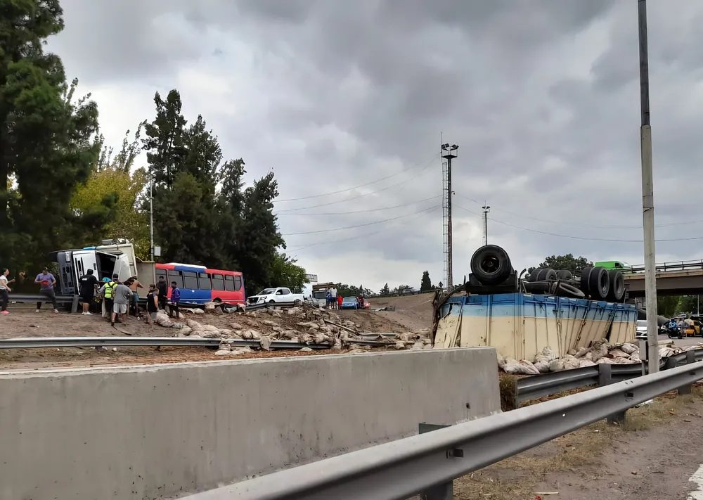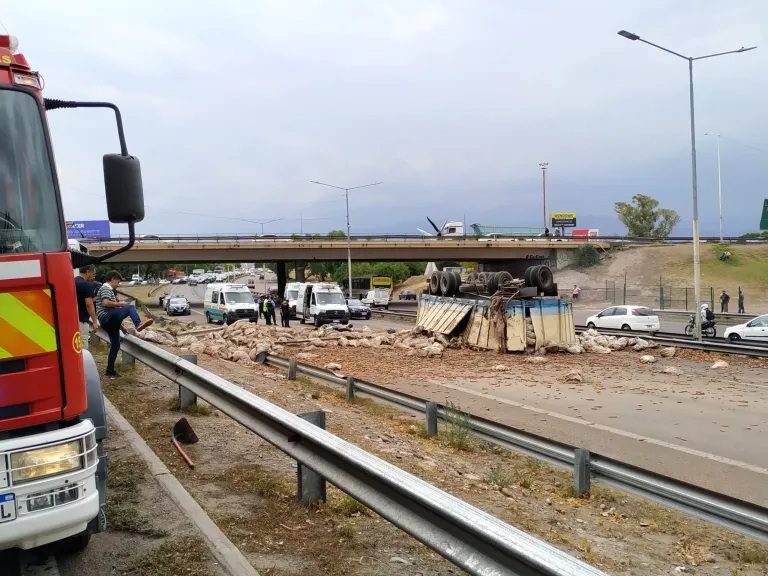 Ocurrió a las 15.08, donde se unen ambas arterias. La parte de adelante del camión quedó tendida sobre el asfalto mientras que el acoplado, que estaba totalmente cargado con bolsas de zanahorias, rodó hacía abajo y bloqueó por completo el Acceso Este.
