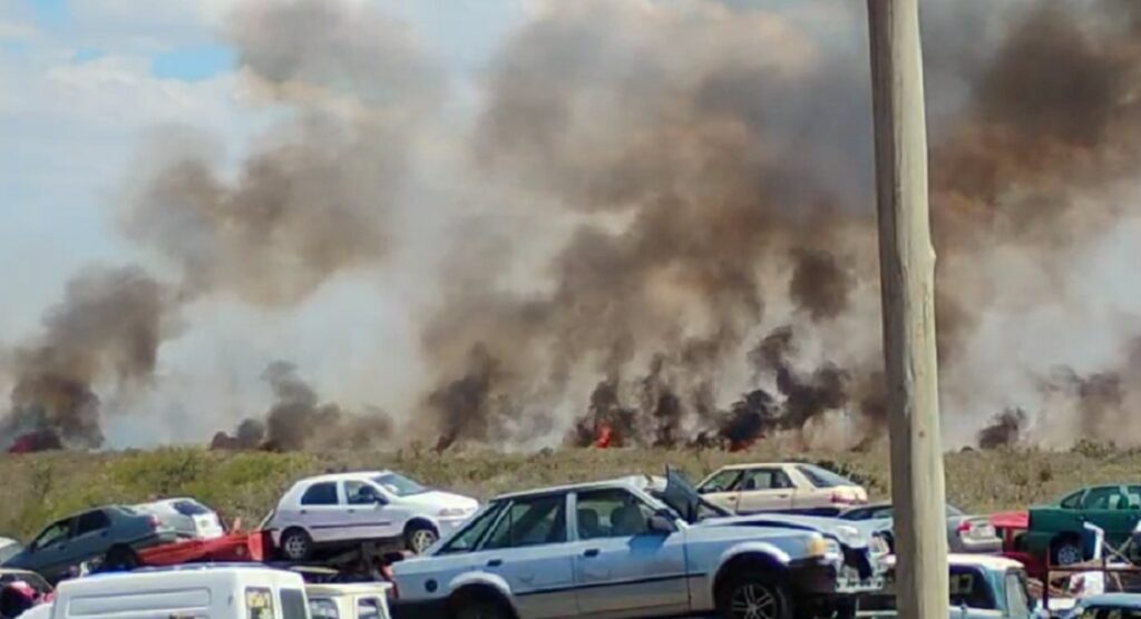 Las llamas se iniciaron en un descampado y Bomberos Voluntarios de Tunuyán, Tupungato y La Consulta trabajan en la zona para evitar que afecten a los vehículos.
