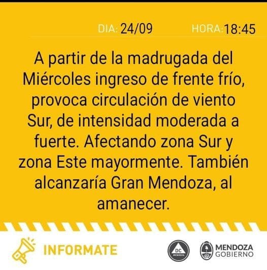 En este sentido, Defensa Civil de Mendoza amplió esta información con el siguiente aviso: