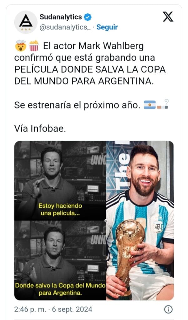 Mark Wahlberg hará una película donde salva la Copa del Mundo para Argentina