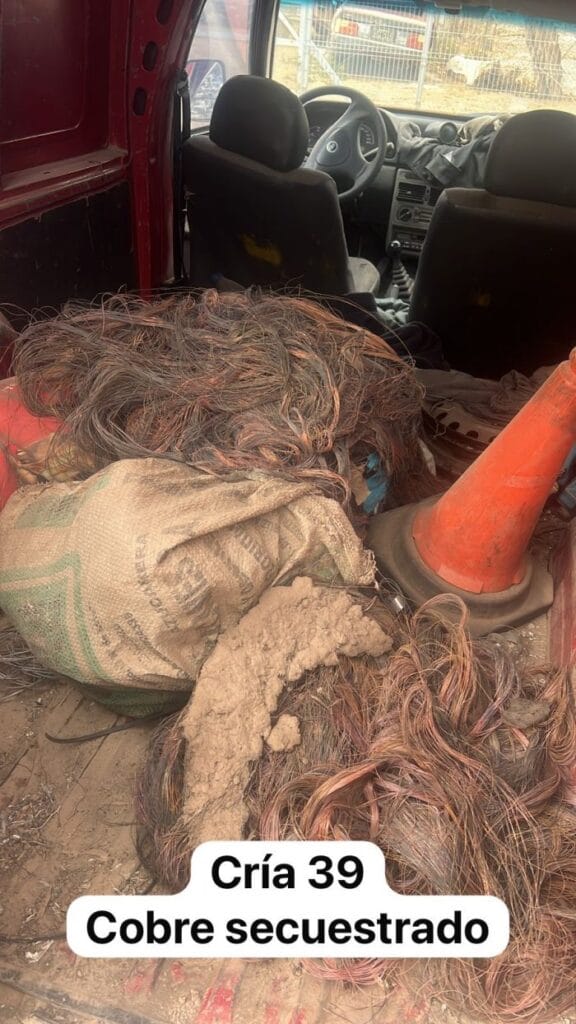 Los efectivos policiales, alertados por el CEO debido a un reporte de quema de cables, encontraron en el lugar una camioneta Fiat Fiorino, con una escalera y unos 150 kilogramos de cobre, además de varias herramientas. El detenido alegó trabajar para la empresa Retesar y que estaba quemando tramos de cables en desuso.