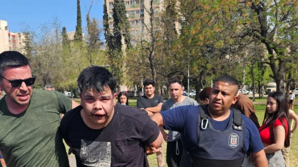 En esta ocasión, pasadas las 15 hs de este miércoles un sujeto asaltó a un repartidor de Pedidos Ya, aunque no llegó muy lejos, ya que vecinos que disfrutaban la tarde en el parque ubicado junto al Acceso Este de Guaymallén; atraparon al delincuente y le dieron una paliza.