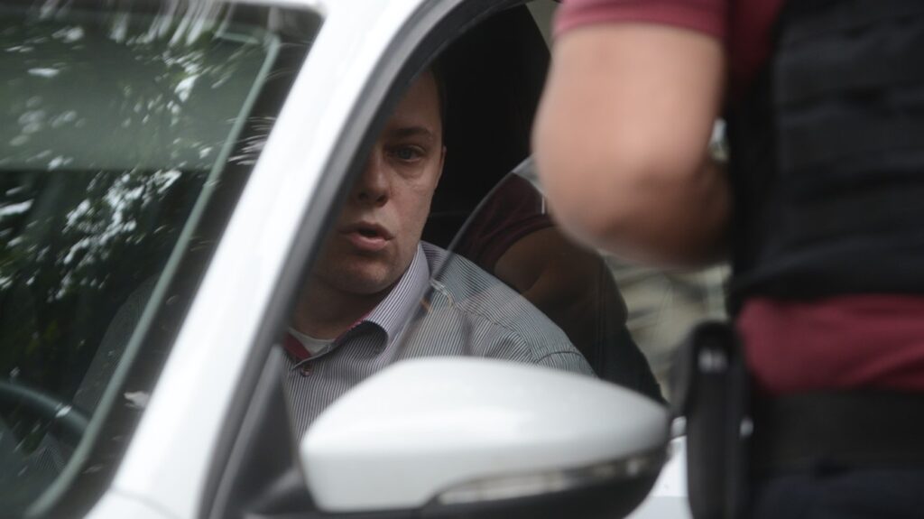 Una vez que llegó a la puerta de la embajada, la Policía de la Ciudad cortó el tránsito de la cuadra Rodríguez Peña al 1700. Mientras el hombre tomaba agua, bajó la ventanilla para entregar documentación a tres hombres de la embajada, que se las llevaron a los efectivos de la Policía.