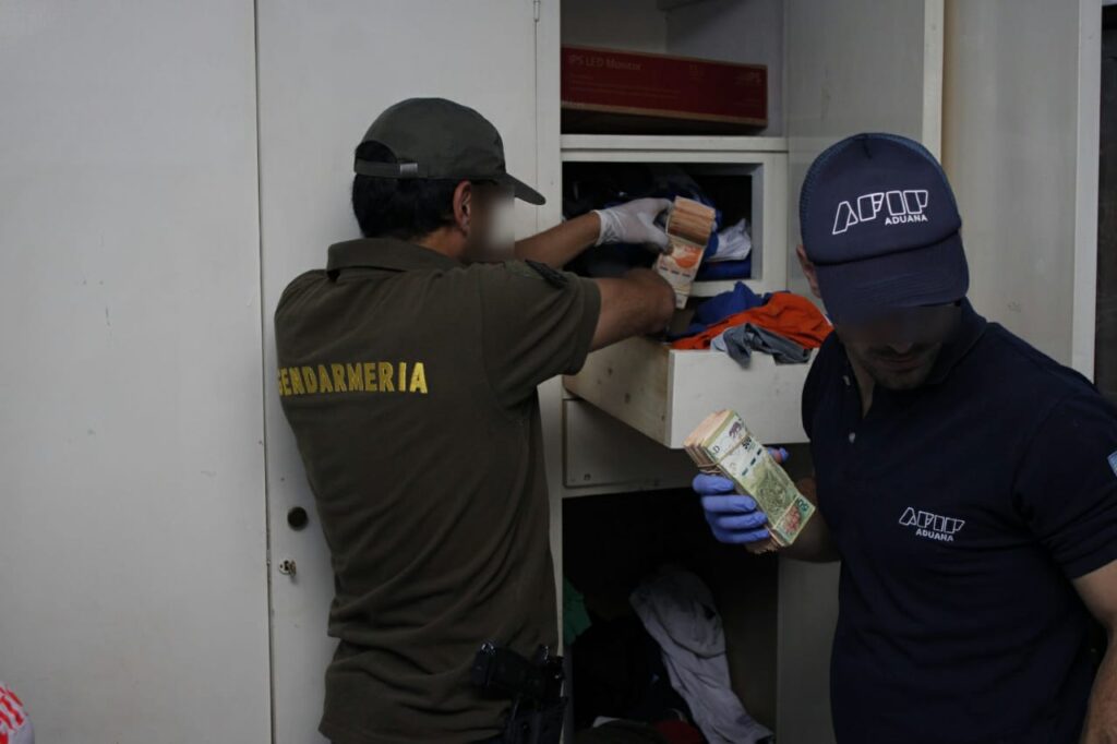 Además, los efectivos incautaron 4.572.000 pesos argentinos, 2.120.000 pesos chilenos, 3,5 gramos de marihuana, dispositivos móviles, documentación y mercadería en infracción a la Ley 22.415.