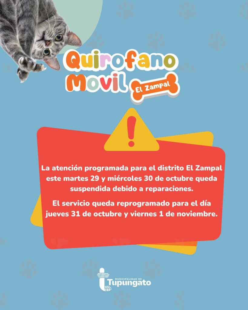 El municipio de Tupungato informa a toda la comunidad un cambio en la atención del quirófano móvil, se reprogramará debido a reparaciones.
