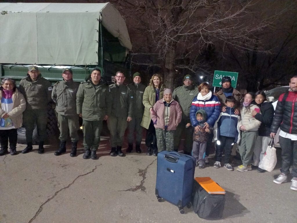Luego comenzó la evacuación, se embarcaron a las 25 personas en el vehículo de la Fuerza hasta la Ruta Provincial N° 222, continuando su traslado en transporte escolar desde el Paraje Los Molles a la ciudad de Malargüe distante a 60 kilómetros.