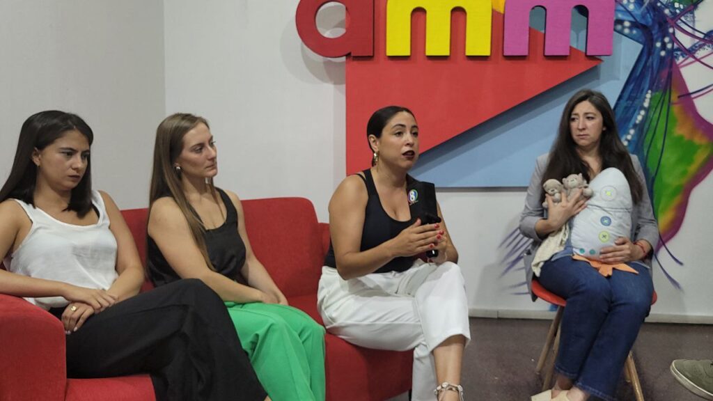 La mujer acompañada de sus abogadas, Carimé Mercado, Florencia Güizzo y Melanie Giunta, brindaron declaraciones a Canal 8.