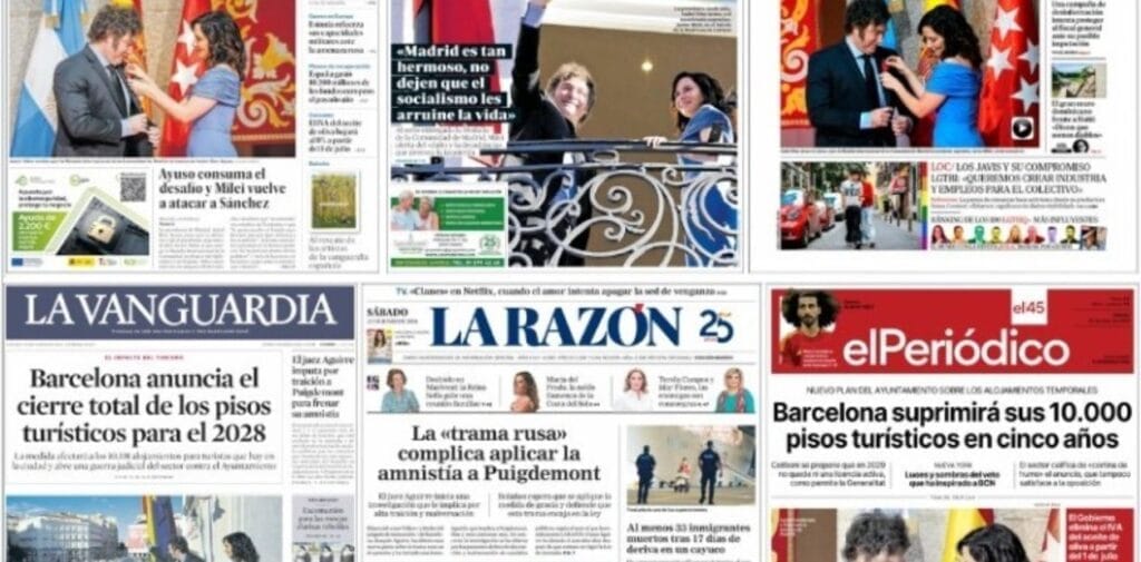 La prensa local se hizo eco y la imagen del libertario apareció este sábado en las tapas de los principales diarios españoles.