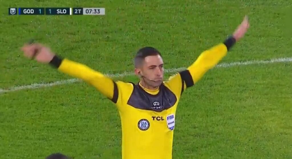 Empataban 1 a 1, pero a los 7’ del 2T, Nazareno Arasa resolvió suspender el encuentro por los graves incidentes protagonizados por la barra tombina.