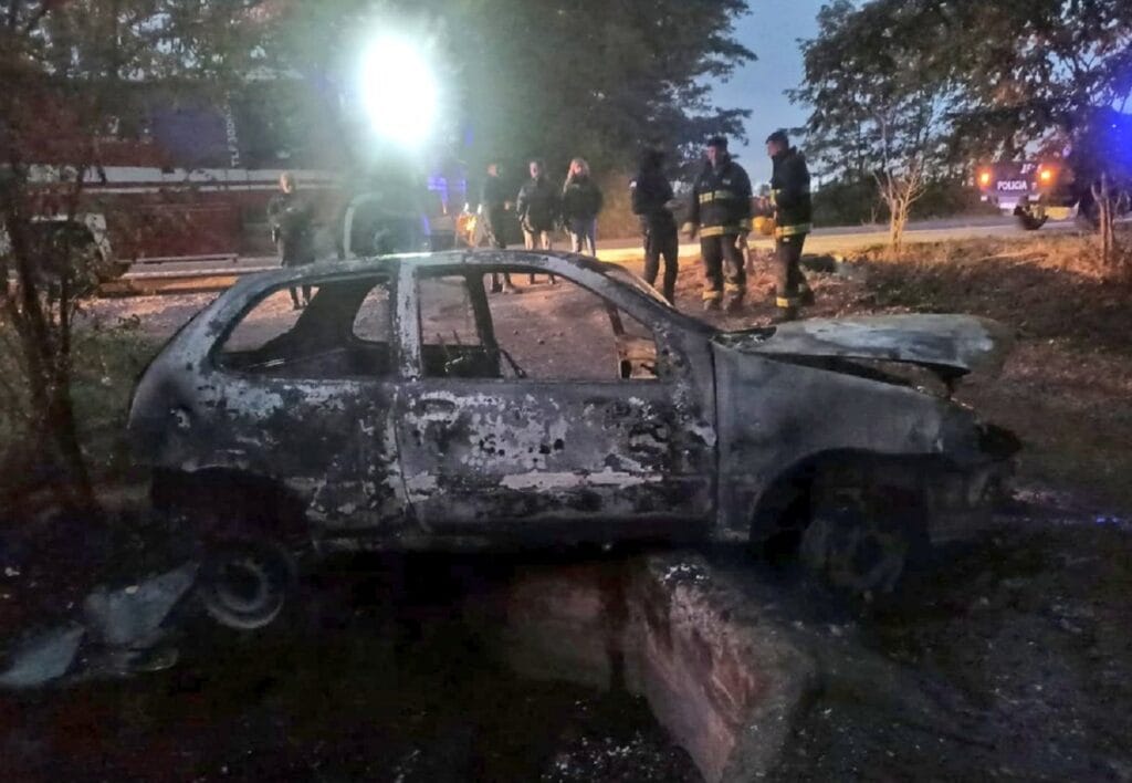 Tras el accidente, el vehículo -un Fiat Palio- se incendió.