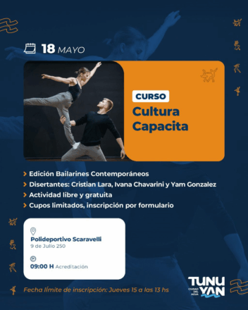 Además, el día 18 de mayo, en el mismo sitio, tendrá lugar una capacitación para bailarines contemporáneos. Los disertantes serán Cristian Lara, Ivana Chavarini y Yam Gonzales. La acreditación comenzará el 18 de mayo a las 9:00 horas.