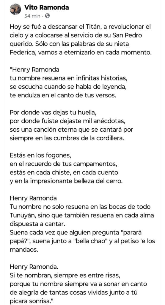 Este miércoles, se conoció el fallecimiento de un querido y respetado vecino de Tunuyán, Henry Ramonda. Reconocido por su gran labor para la comunidad, fue unos de los fundadores del Club Andino en el departamento, donde se han formado grandes esquiadores en el Valle de Uco.