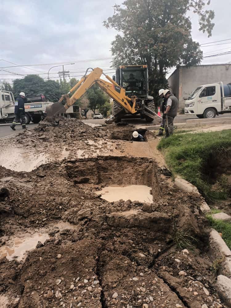 Esto se debe a la rotura de un caño maestro y ya trabajan para reparar el daño en la intersección de calles Mitre y Godoy Cruz.