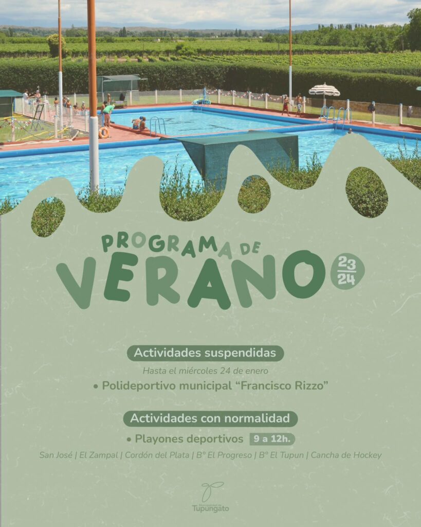 La municipalidad de Tupungato, informó que debió suspender actividades del programa Verano, debido a «las condiciones climáticas adversas».