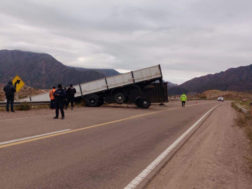 Según el chófer, se desprendió el semiremolque, lo que le hizo perder la estabilidad y el equilibrio al rodad. Luego, se realizó un bypass debido a que el camión quedo ocupando media calzada.
