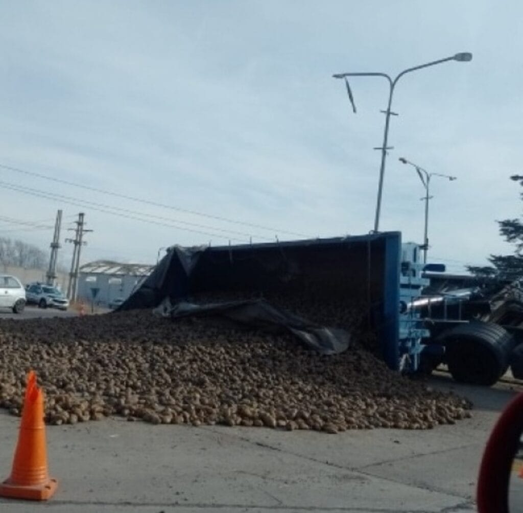 Fuentes policiales, confirmaron que se debe a un siniestro vial, protagonizado por un camión. Los primeros datos, indican que el conductor perdió el dominio y volcó, se investigan los motivos. Iba cargado con papa.